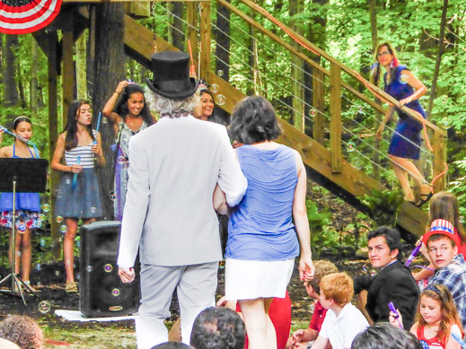 Sister Wendy walks Brian down the aisle while the girls sing.