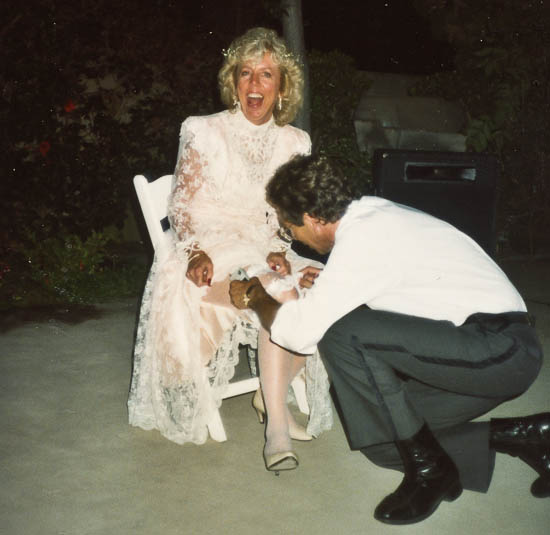 Now, Trevor must throw the garter, if he can get it off my leg, it's holding up my pump !