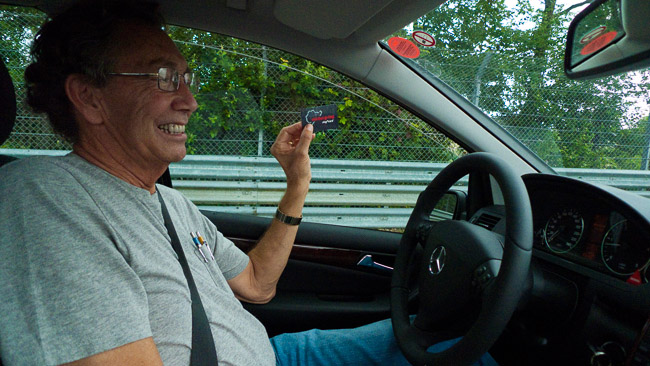Trevor shows his card good for one more lap