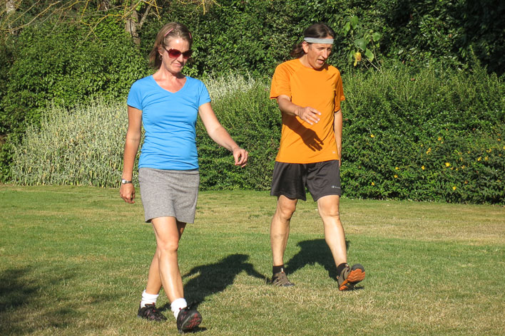 Parents walk the field of Theo's birthday soccer game