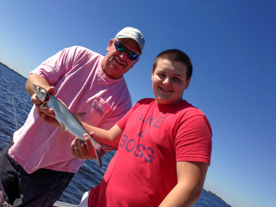 Mike and Tom catch a fish. Tom knows where to find 'em.