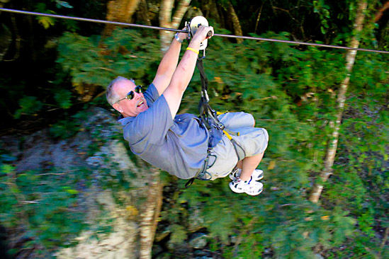 Pete on the ZipLine, he almost decided not to join us. Look how much fun he's having.