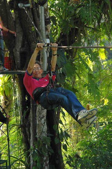 Trevor analyzing the speed of the zipline "flyers" across the river.