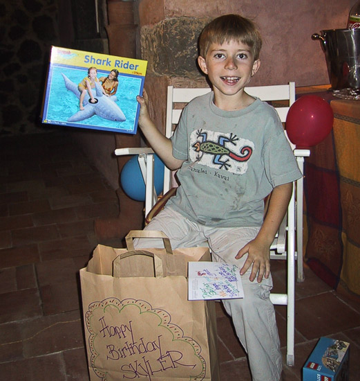 Skyler's birthday - July 13th, he's 8 years old. Kay brought this all the way from Dallas