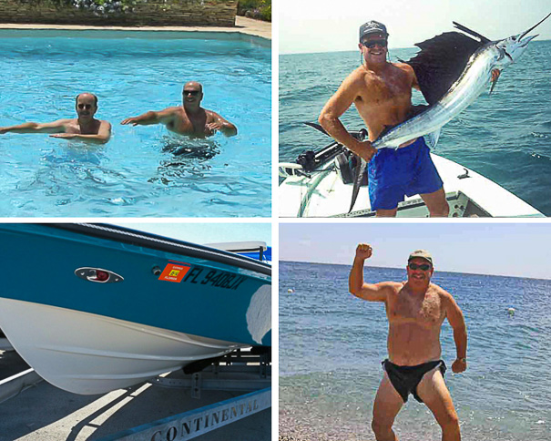 Teaching Steve to do water aerobics. New boat, showing off in Sicily.